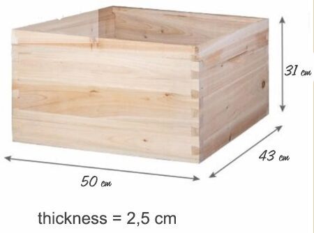 Fir wood Thickness:25mm With:1*metal cover 1*inner cover 1*super box 1*bottom box 1*hive base Without frame