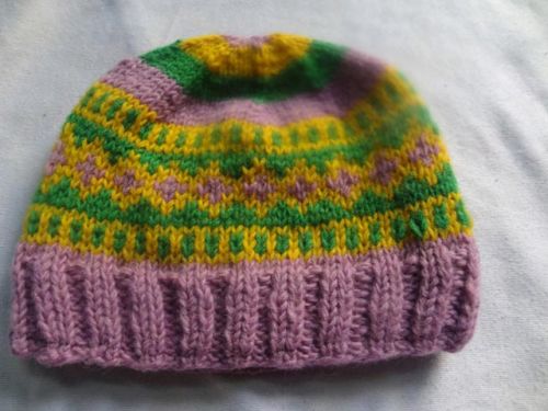 100% New Zealand wool outer part, fleece lining inside. Multi color hand knitted patterns,2 x 2 riv knit border,