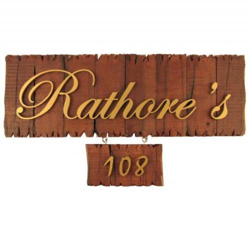Personalise your home entrance with this unique Double Layered Wood Name Plate . Sleeperwood with name cut in wood lends a rustic yet urban look. Hooks smartly hidden and embedded at the back of the wooden panel to nail to the wall.
