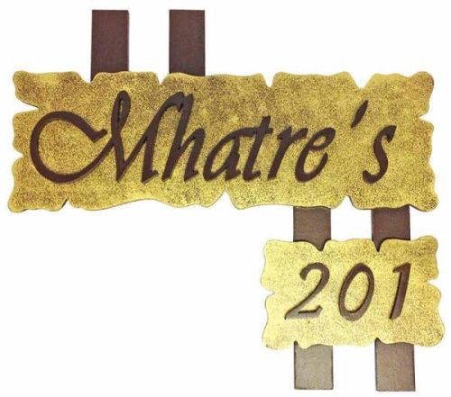 Personalise your home entrance with this unique Brown and Gold Double Layered Wood Name Plate crafted to create an impression. A combination of wood artistically placed over parallel stretched of wood with name cut in wood, suggests an artistic elegant look. Hooks smartly hidden and embedded at the back of the wooden panel to nail to the wall.
