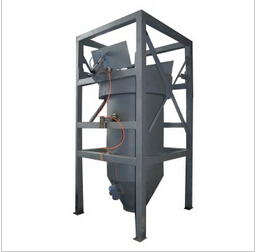 a crane lifts a big bag above the frame of eds-2 series of dump station. Then the crane lowers the big bag down slowly. During lowering down, a cross-shaped knife cut the bottom of the big bag and material inside falls down by gravity into the storage bin. In this way, discharging is completed. This station can protect production environment, reduce workers` working intensity, and increase production efficiency. It can solve the problems of agglomeration due to damp, and material building-up during big bag discharging.
