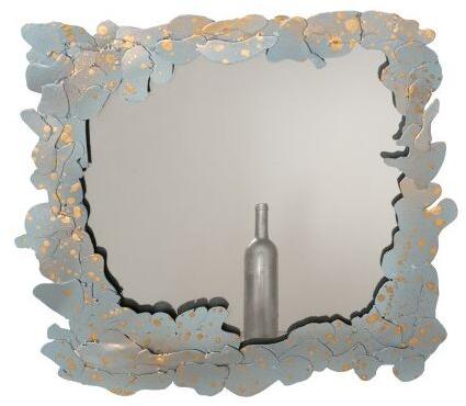 Specchio-frastagliato-950 big indented mirror from: € 414,80 big indented mirror realized with chip plates, welded on frame. Painted with acrylics colors. Available in other colors. Available in different sizes: