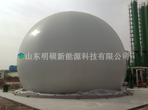 it is 34 sphere or hemispheroid, which is fastened to the cement base by the rail. The main part is made by special processing polyester materials. The tank is composed of outer membrane, inner membrane, basilar membrane and accessory equipment. The inner membrane can anti-corrosion and all kinds of microbes, has the performance of highly fire prevention and accord with the related products standards of germany. There forms a capacity alterable airtightness space between the inner membrane and the basilar membrane to storage biogas. The outer membrane constitutes the sphere shape of the storage cabinet, which can protect the inner membrane, anti uv, and has self-cleaning function.