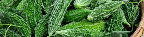 Bitter gourd is a temperatetropical vegetable probably originated in South-East Asia. Bitter gourd pods are light to dark green and have oblong or oval shapes with a pointed tip at the blossom end. Internally, the flesh is white with rough edged seeds, somewhat similar to ridge gourd seeds in appearance. As the fruits begin to mature, they gradually become hard, turn yellow or brown in colour.