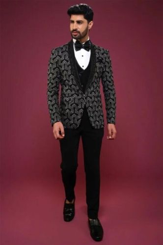 BLACK AND WHITE EMBROIDERED VELVET TUXEDO SUIT?