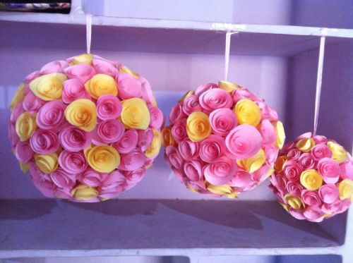 We sale all types of Paper Flower Pomanders with multiple sizes ,designs and colors for reasonable prices These Rose Paper Flower Pomanders are very useful for Decoration purpose in all types of functions, parties and events and also for Home Decoration purpose