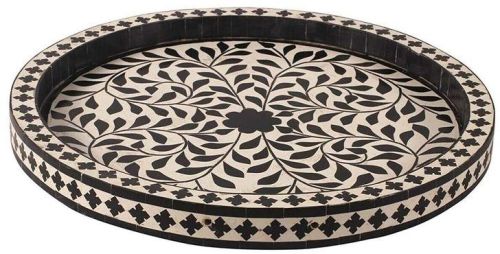 CNC Polished Bone Inlay Round Tray, For Serving Tea, Color : Black