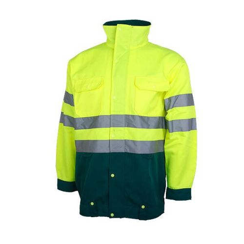 Black bottom hi-vis winter coat item no.: pa003 *100% polyester with pu coating,waterproof; *5cm 3m scotcnlite reflective tape *detachable qualited lining *2 pockets *all the seams to be thermo-adhesive with sealing tpae to assure water-tightness.