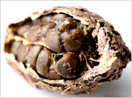 Seeds. Normally, the large (typically, 3 cm), brown pods are sold as a whole. |
