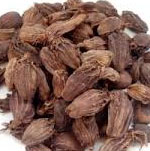 Cardamoms originated from South India. It is one of the world's most ancient spices. The pods are triangular across and oval shapped. This spice is often used in Indian sweet dishes and drinks. It flavors custards and liquors. Black whole cardamoms are an essential ingredient of garam masala. These black cardamoms are especially used to enhance meats and rice pilaf.Â