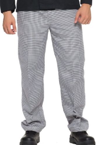 Black Checks Chef Trouser Fully elasticated Waist band with draw string 2 slant pockets one back patch pocket Black Checks Chef Trouser Fully elasticated Waist band with draw string 2 slant pockets one back patch pocket Fabric Oeko Certified, Crease Resistant , Industrial Washable Europeon Quality Options : 65%polyester 35% cotton 210gsm 100% cotton twill 200gsm 65%polyester 35% viscose 200gsm Sizes 28″ – 42″ Colors Black Black Check Blue check White Wash Specifications Industrial Washable Upto 60C with similar colors Medium Heat Iron Tumble Dry Low