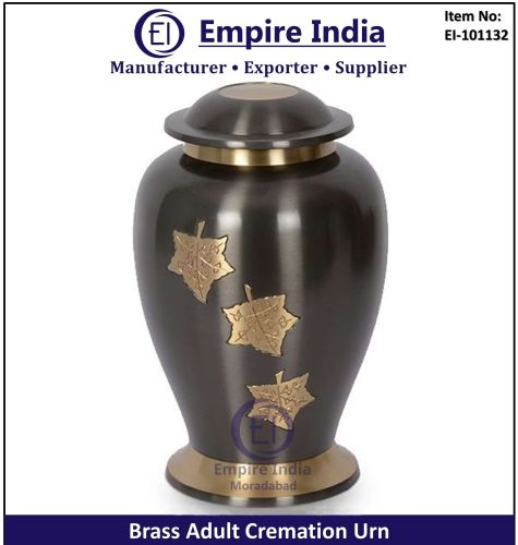 Provide a dignified tribute with this Black & Gold Leaf Brass Adult Cremation Urn, artistically crafted by Empire India, Moradabad. Featuring a sophisticated black finish adorned with intricate gold leaf accents, this urn offers elegant remembrance for funeral homes, memorial suppliers, and families seeking lasting grace.
