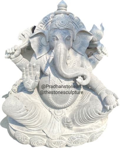 The intricate carvings on the stone highlight the elephant head, large ears, and curved trunk, symbolizing wisdom, listening, and adaptability.