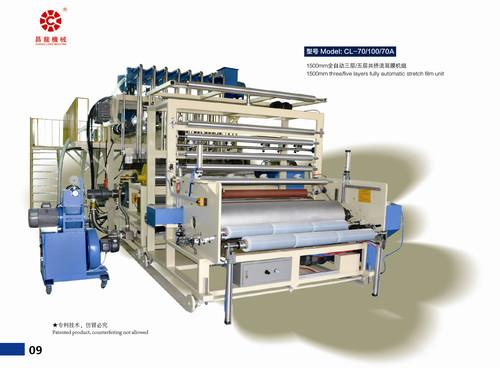 Contact Supplier1500mm China Hand Plastic Wrapping Film Machine Combined with Italy and Amercian high-tech to produce high plasticity,this machine is based on our long time manufacturing experience and customer's actual operate, designed for three or five layers stretch film , cling film , and protective film, which is very easy to operate. MainTechnical Parameter: Model: CL-7010070A Width of Die Head: 1850mm Width of Film: 1500mm Thickness of Film: 0.01-0.05mm Structure of Film Layers: ABC or ACBCA Liner Speed of Machinery: 200mmin Max Extrusion Capacity: 380kgh Max Rewind Diameter: 400mm Screw Diameter: 7010070mm LD Ratio of Screw: 30:1 Motor Power of Main Machine : 379037kw Total Power: 50-220kw Overall Dimensions(L*W*H): 11.5*4.3*4.5m Total Weight : 18.2T Features 1.Melt metering pump unit uses sensor technology,precise control uint extrusion pressure to achieve a linar extrusion ,improve film properties. 2.Vacuum devices make the production of film better fit confluemce extended cooling reel,better coolng effect ,improve film performane. 3.Installation of fence around the screw stairs,user friendly design,easy to operate those machines at any time to view the situation. 4.Touch screen centralized control,interpersoal friendly interface,simple operation,and more intelligent. 5.Casting film production crew uniform thickness,good tensile strength,strong puncture resistencee,especially for high