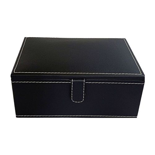Beautifully hand-crafted leatherette storage box with 2 compartments. It comes with white stitching on the outside and black velvet lining inside. It is suitable for storing delicate items like, jewellry, chess pieces, perfumes, etc. Size : 10 x 7 x 4 inches Color : Black