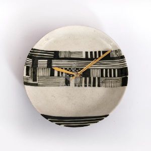 MATERIAL : QUARTZ STONE POWDER, POWDERED GLASS, BORAX, TREE GUM, SODIUM CARBONATE, FULLER′S EARTH We cannot hold time, but we can definitely embrace it through beauty! Add a style statement to your wall with this chic, black hand-painted wall clock in Blue Pottery. Adorn your wall with its sophisticated style to bring easy elegance into your living space. Its aesthetic appeal makes it perfect for gifting on festivals and occasions.Â