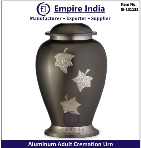 Celebrate a dignified remembrance with this Black & Silver Leaf Aluminum Adult Cremation Urn, elegantly crafted by Empire India, Moradabad. The urn features a sophisticated black painted finish adorned with intricately engraved b, providing artistic tribute and lasting beauty for funeral homes, memorial suppliers, and families.