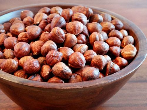 Hazelnut is also called filbert. It is the edible nut of a hazel, having a hard smooth brown shell. These nuts grow in bunch on the tree in temperate zones around the world. The fuzzy outer husk opens as the nut ripens, revealing a hard, smooth shell.
