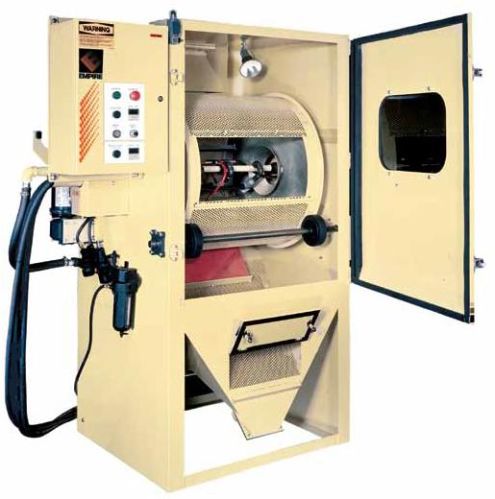 PN 110001 – Pro-Finish Basket Blaster, Model BB4-3K Includes: o 30″ diameter x 30″ wide #11 gauge steel rotating basket with 516″ perforations. 24″ wide x 11″ high door opening o 350 lb. capacity, 4 cubic foot basket o Conve