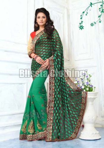 Item Code : VRNNX15 Color Green Fabric Georgette & Brasso Blouse Fabric Georgette Blouse Type Un-Stitched Blouse Color Red Saree Length 5.50 Mts Blouse Length 0.80 Mtrs Work Designer, Embroidered Work Occassion Party Wear, Festival Wear, Traditional Wear, Wedding Wear, Reception Wear Time to Ship 2-3 Working Days Wash Care Dry Wash only.