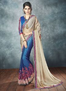 Blue Colour Chiffon Embroidered Saree, Occasion : Party, Wedding