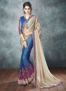 Specifications of Hitansh Beige & Blue Colour Chiffon Embroidered Saree With Unstitched Blouse Piece