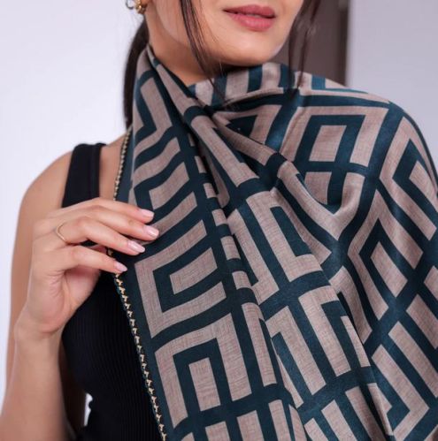 Geometric Pattern: The scarf boasts an eye-catching geometric pattern, adding a contemporary and fashionable touch to your ensemble.