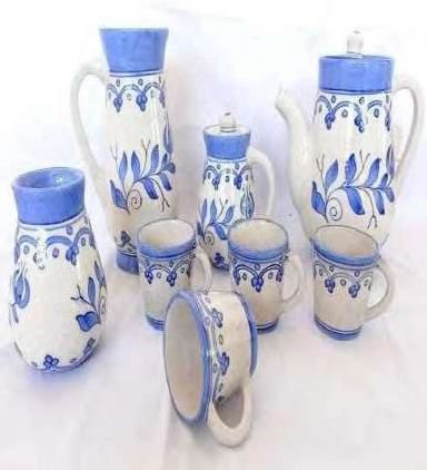 White Blue Pottery Tea Kettle Set, Feature : Eco Friendly, Attractive Look