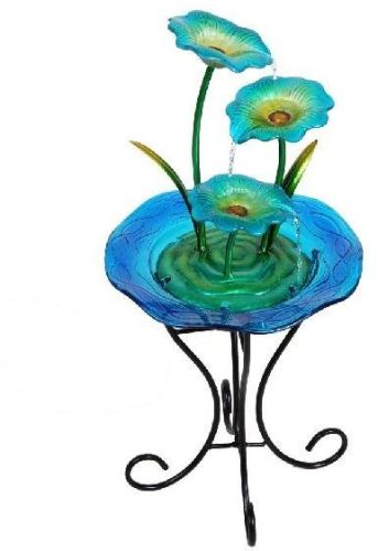 Beautiful fountain with a beautiful blend of glass and metal. The lotus flower and the dragon fly are made of metal beautifull hand crafted and the rest of the fountain is made of glass. The fountain has a metal stand and comes with an electric motor and circulates the water once put in the fountain. This piece is a must have and will brighten up any corner of your home. This is ideal for gifting.