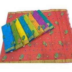We supply Silk Organza Sarees, which are widely renowned for their smooth texture and high tear resistance. Feel free to approach us, if seeking for top-of-the-line quality Silk Organza Sarees! Our well-structured warehouse is properly managed and maintained by our adroit professionals. Moreover, we keep on updating the unit for better safety.