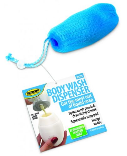 BODY WASH DISPENSER – BLUE Easy squeeze scrubber. Never waste your shower gel again! Liquid soap saver! Simply pour into the dispenser. Gently exfoliates for smoother skin. Dispenser hidden inside of the scrubber. Use drawstring to hang to dry. Prevents waste. Saves money. ID JB7070BLU BRAND IDW-HNH CASE PACK 48 CASE WEIGHT 12 CASE LENGTH 12.6 CASE WIDTH 12.1 CONSUMER PACK COLOR STRING TAG, ALL INSIDE RESEALABLE CONSUMER PACK DIMENSIONS 9.50" X 4.70" X