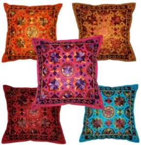 Wholesale lot of Bohemian Indian embroidered cushion covers at discount prices. Available in mixed assorted Lots pack directly from manufacturer in India. Â