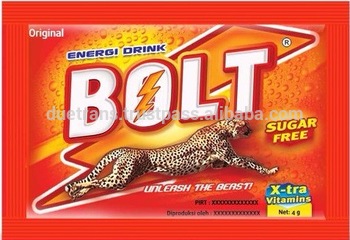 Energy drink in powder form, with orange or mango flavour. Packed in sachet 4.5gr, suitable for one glass about 200ml. contain : ginseng, caffein, taurine, vit b1. B2, b12