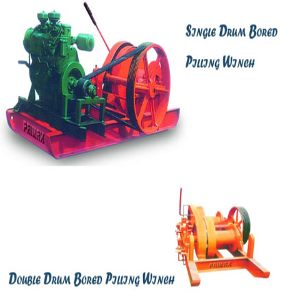 Quick Overview  Bored Pilling Winch are famous for its unique design, trouble free service & roboust construction  SPECIAL FEATURES : Cone Clutch for Easy Operation Heat Treated M.S. Pinion for smooth functioning Carbon Steel Shaft Fabricated Steel Structure Heavy Duty Bearings All Controls within Reach of Operator Power - Electric Motor/ Diesel Engine Safety Ratchet Arrangement