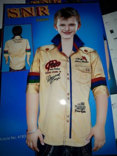 SIZE FROM 8 YRS TO 16 YRS AND WE USE TOTALLY MILL MADE FABRIC AND ALL NORMS HAVE BEEN FOLLOWED WHILE MANUFACTURING OF THIS PRODUCT IT IS WASHED SHIRTS WE HAVE DEVELOPED 4 COLOUR ON THIS DESIGN
