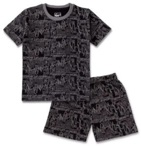 Boys black T-shirt & shorts set, ideal for casual, comfortable wear.