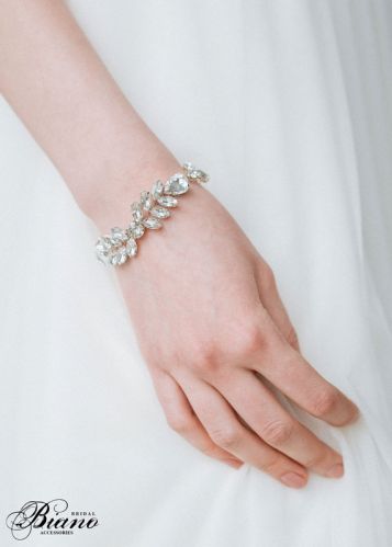 Amazing bridal bracelet features a modern vintage style design. Created with sparkly different sizes rhinestones. The wonderful thing about this bracelet is that it goes with everything! Super sparkly and very elegant. Available in silver tone.