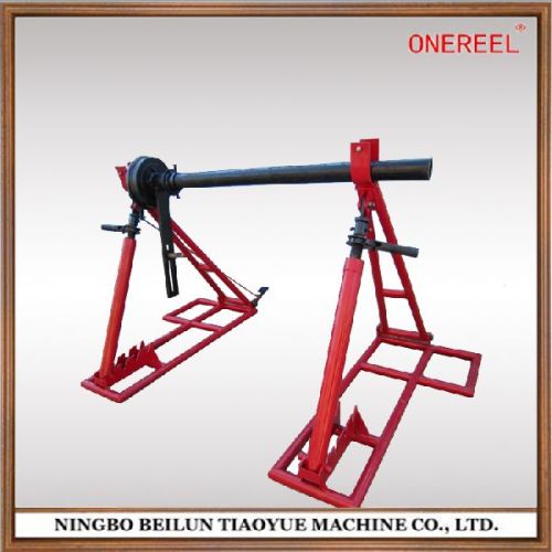 Contact SupplierCable reel drum jack with brake 20 ton hydraulic cable drum jack cable jack stand for stringing cable  cable stands used for holding or lifting cable drums off the ground so they can be uncoiled for installation of underground power cables, conductors, wire, coaxial cable, etc. The cable drum is moved, rolled or lifted into position and then jacked up using an integrated hydraulic jack or screw jack system. Small units for industrial electricians are lightweight and have wheels for small coils of cable. Heavy utility cable drum stands feature a disc brake system and/or can be powered by a hydraulic motor for coiling and uncoiling. Application it is applicable to the placement of the cable tray, with hydraulic lifting.  features it is applicable to be as the support of large cable reel in laying cables in the city. It is easy to move with the trundles in the bottom. It can be equipped with a braking device, using the foot brake.  technical data product no. Model type rated load(kn) outside dia of reel(mm) reel weight(t) weight(kg) 80473 sy-15 150 ≤ φ3200 ≤ 15 130 80474 sy-20 200 ≤ φ3600 ≤ 20 150  onereel company insisting on sales of cable jack stands, cable reel handling equipment, greenlee reel stand, heavy duty reel stands, coaxial cable reel holder, spool jacks, greenlee reel jacks, wire pulling jack stands, wire reel stands., etc. Â