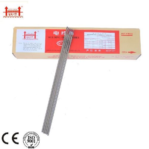Contact Supplier Brand Welding Electrodes Stick Welding Wire Features:  Character of E6013 Welding Rods: Best quality E6013 welding rods1.automatic de-slagging 2.easy reignition,stable arc3.beautiful appearance of weld 4.excellent welding performance,excellent operating performance Chemical Composition of Wire(%): C Mn Si S P ≤0.12 0.3-0.6 ≤0.35 ≤0.035 ≤0.040 Mechanical Properties of Deposited Metal: Test Item σb(MPa) σc(MPa) δs(%) Guarantee Value ≥420 ≥330 ≥17 Recommended Welding Current: Electrode Diameter(mm) 2.0 2.5 3.2 4.0 5.0 Current Range(A) 40-70 50-80 80-120 150-190 180-240  Application: This model has excellent welding performance,excellent operating per formance,easy reignition,stable arc and beautiful appearance of weld. It is suitable for welding on thin plates and cosmetic welding which requires the weld beads to beautiful and glossy, Such as vehicles ,building and machinery . 4boxes/cartons=20kg one 20' container can load 25-27MTS , 1250- 1350 CARTONS , one MTS is about 0.6 CBM .