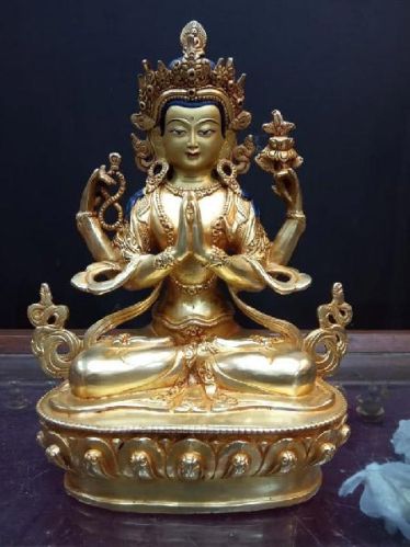 Carved by seniuor srtisens. Full body half or full gold plated and face hand paint by 24 karat gold.
