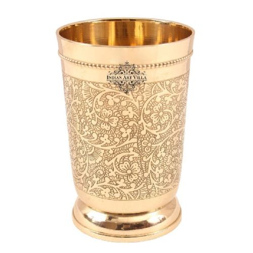 Brass Embossed Design Glass Tumbler With Bottom 330 ML?