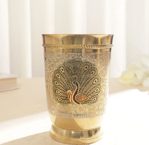 Infuse your kitchen and dining area with a rustic and cultural ambiance with this pure brass glass. The material is a durable and environmentally conscious choice that develops a unique patina over time, enhancing its antique appeal and making it a timeless addition to your kitchen collection.