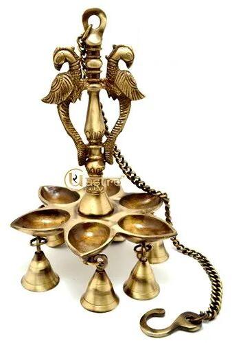Golden Brass Peacock Hanging Diya, For Worship, Decor, Gift, Size : 10 Inch