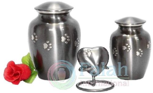Brass Pet Urns Paw Print Charcoal Grey Set of 3 pcs. Large Urn - Capacity 65 cubic inch Small Urn - Capacity 45 cubic inch Heart Urn - Capacity 5 cubic inch