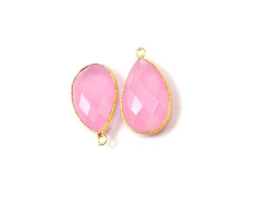 Contact SupplierPear Shape Bezel Pink Chalcedony Gemstone Connectors 13 X 21 MM Bezel With Gold Plated Gemstone Bezel Connectors