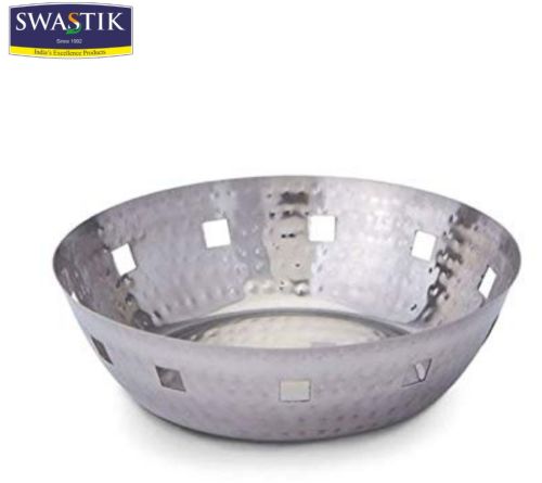 Stainless Steel hammered round bread basket. Ideal for serving roti, naan, bread, etc. Made with heavy gauge stainless steel. It can also be an exquisite gifting option. Flawless finish & premium quality