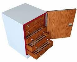 Contact SupplierCapacity 500 specimen tube of 75mm x 25mm size. Cabinet frame of plyboard with melamine lamination. Hinged door is provided with lock and handle and is lined with velvet. Provided with 5 drawers each for 100 specimen tubes.