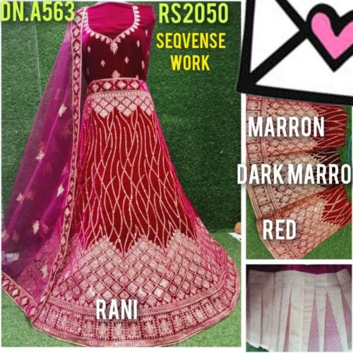 Velvet Net Bridal Sequence Work Lehenga, Color : Multicolor