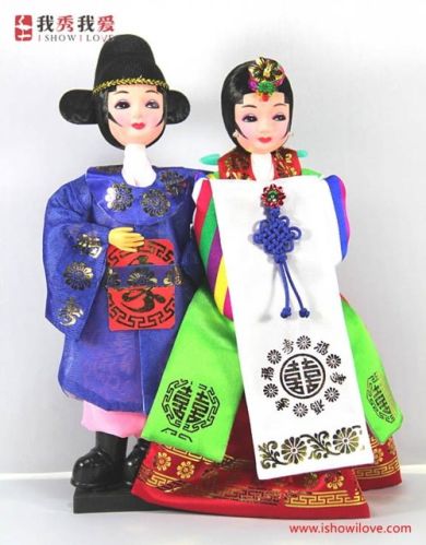 Contact SupplierExquisite Korean style silk figurines are 100% handmade and of high quality. The figurines put emphasis on capturing of someone's bearing at a particular moment. Look at the bride and groom with ruddy complexion; they seem like living persons congratulating their marriage and showing their happiness. The making of a figurine involves a dozen of processes, including carving, color painting, sewing, dress and prop making and headwear arrangement etc. The figurines are perfect choice for presents and home decoration. Please browse our website or send us emails for more information.