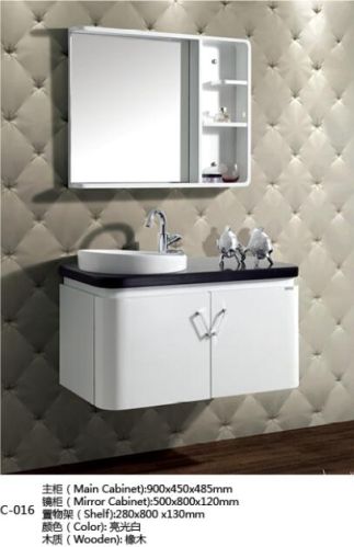 Product size (mm) Main cabinet: 900*450*485 Ceramic basin Counter top: 900*450*40 Mirror cabinet: 500*800*120 Shelf: 280*800*130 Color: bright white Woodiness: oak
